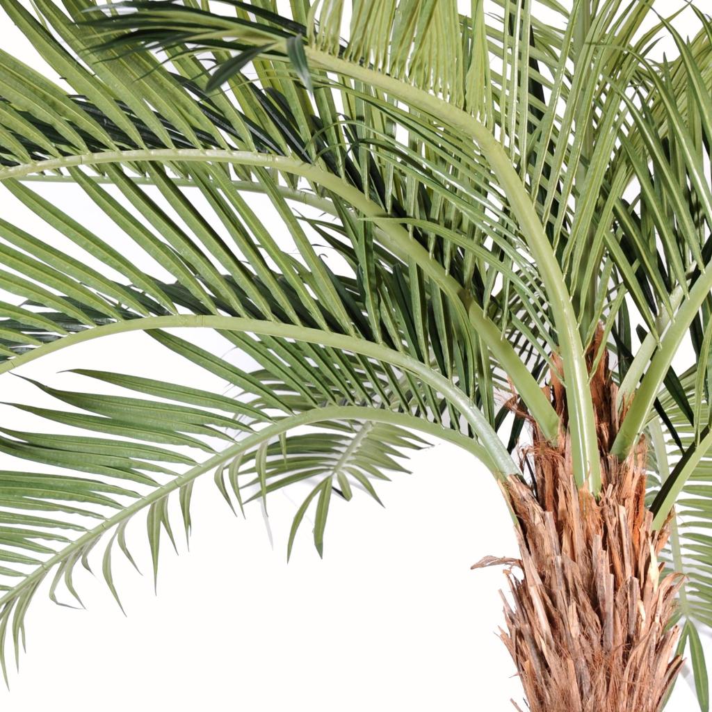Entièrement façonné en fibre de verre, ce palmier artificialise haut de gamme présente un tronc courbé de 0.7m, créant une allure naturelle et réaliste. Le feuillage, en tergal, est finement travaillé pour reproduire fidèlement l'aspect et la texture des vraies feuilles de palmier.